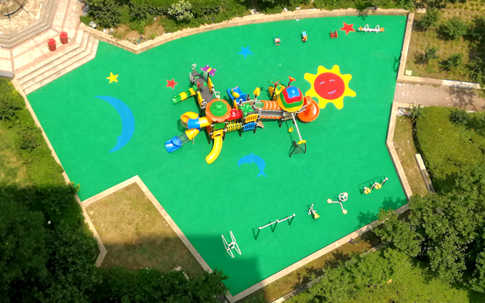 整體項(xiàng)目:大型組合滑梯1套,戶外健身器材5組,搖搖馬蹺蹺板4只;兒童塑膠運(yùn)動(dòng)場(chǎng)可選用環(huán)保膠粘劑、環(huán)保EPDM顆粒,施工全程不添加任何其他添加劑,確保塑膠成品100%安全環(huán)保。塑膠產(chǎn)品后期維護(hù)保養(yǎng)方便且簡(jiǎn)單,以壓力噴水清洗地面即可使塑膠面層保持光潔如新。